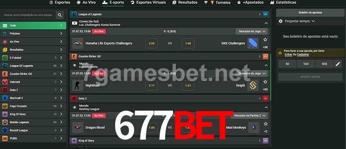 O 677bet oferece uma grande seleção de opções de apostas em e-sports com probabilidades competitivas